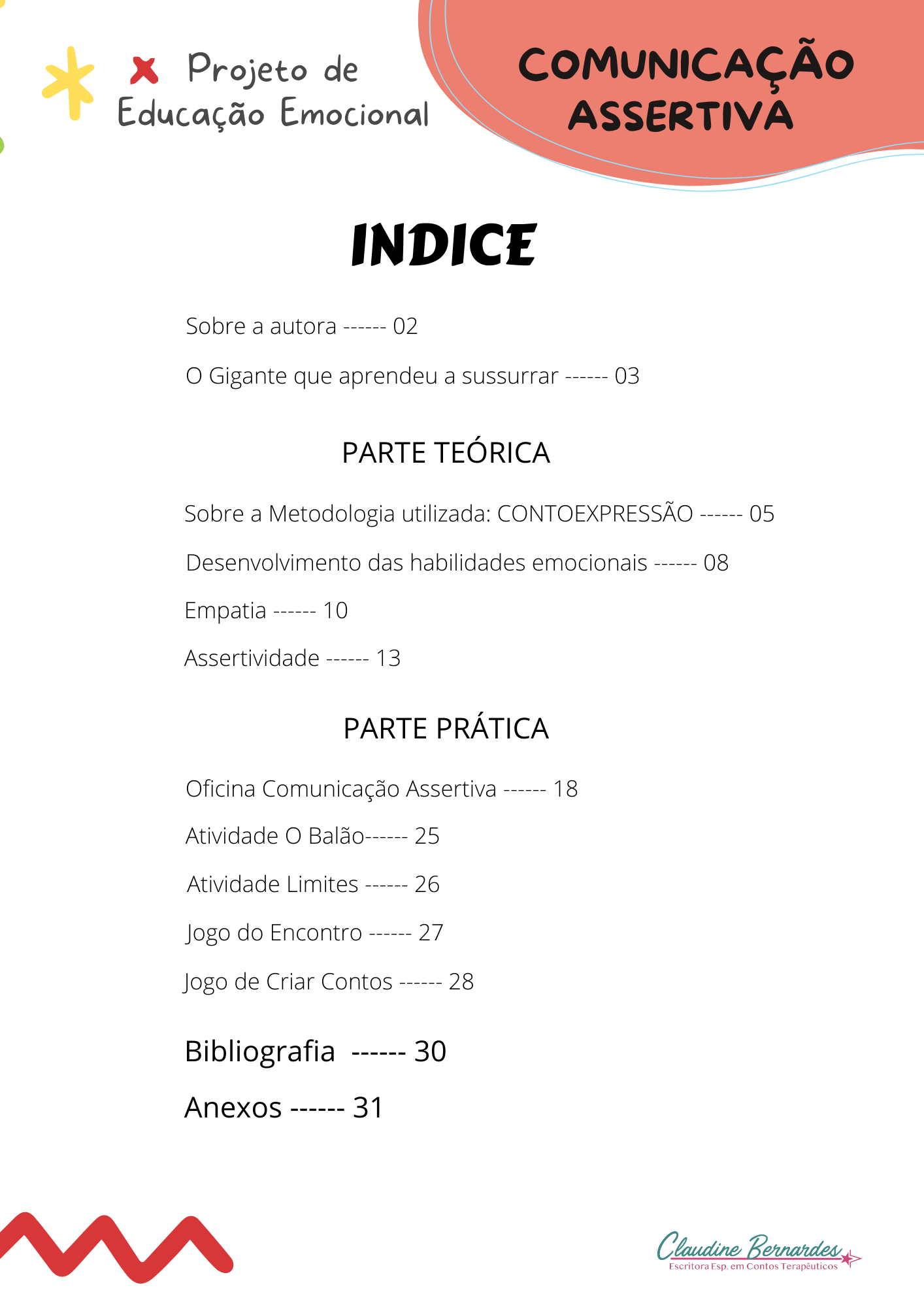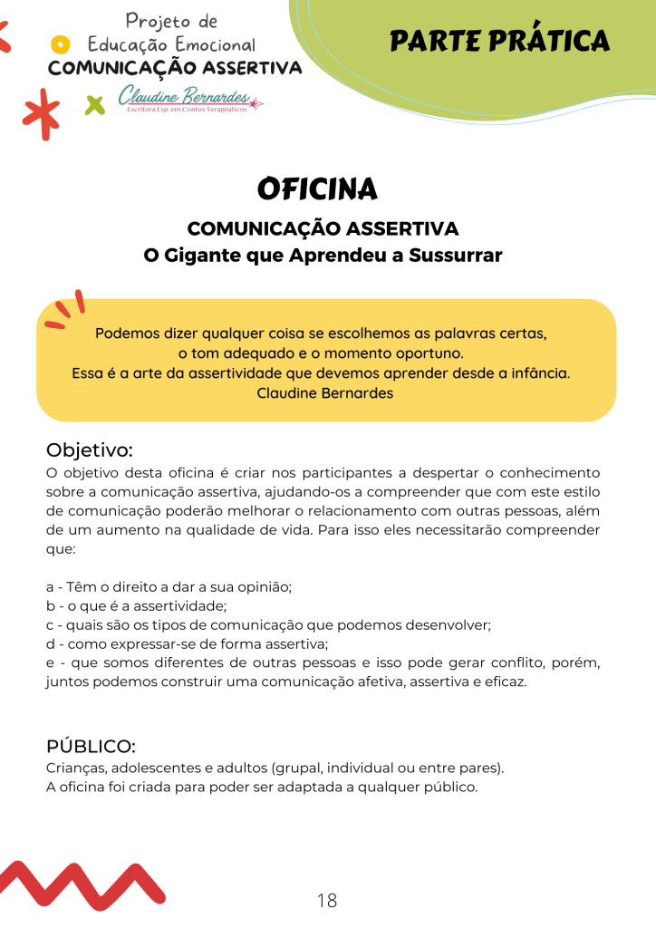 Na PARTE PRÁTICA, você encontrará uma OFICINA DE EDUCAÇÃO EMOCIONAL sobre COMUNICAÇÃO ASSERTIVA, a qual está explicada passo a passo.